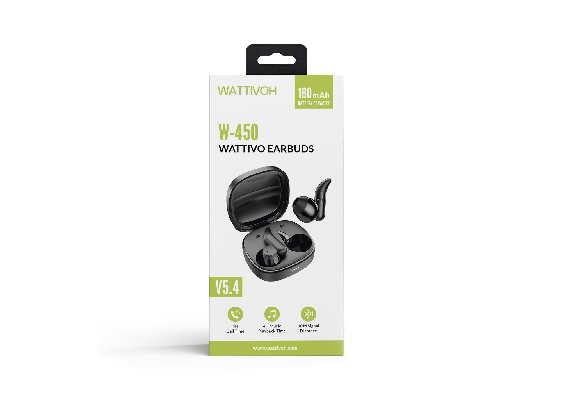 Experience clear audio and stable connectivity with the Wattivo W-450, your go-to wireless earbuds for calls, music, and everyday use. Designed with premium components and a compact charging case, these earbuds offer reliable performance and sleek style.
